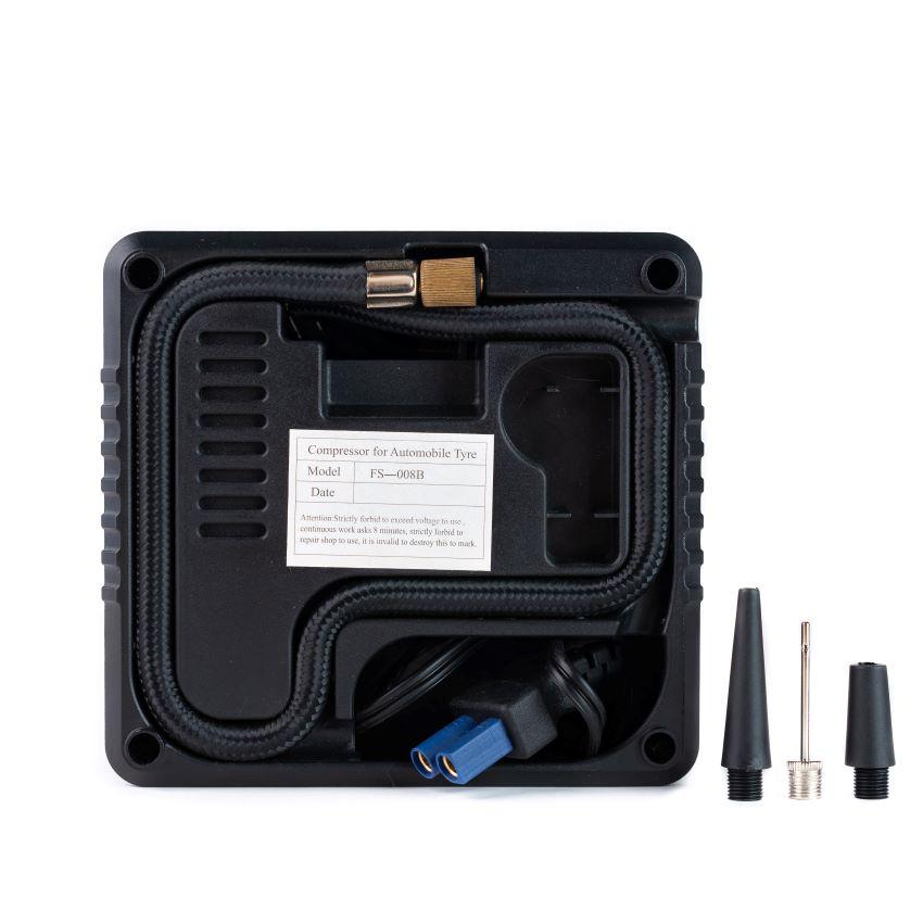 В корпусе устройства имеется: нож для зачистки проводов, молот для аварийного разбития стекла и автомобильный компрессор.