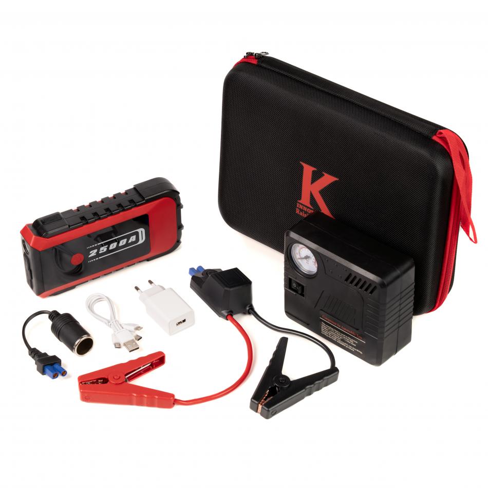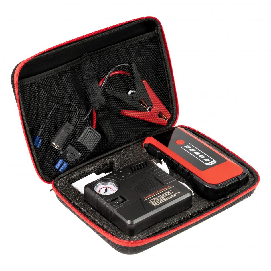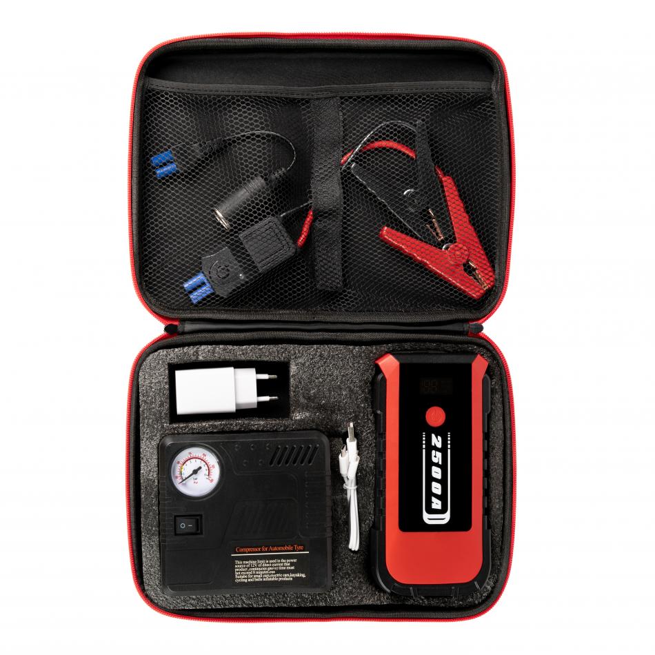 Это специальное пуско-зарядное устройство X5 2500A литий-полимерного типа предназначено для аварийного запуска двигателя транспортного средства. Удобное для запуска в мороз и при севшем АКБ, для бензинового двигателя объемом до 3.5 л. и дизель до 3 л. В комплекте автомобильный компрессор.
